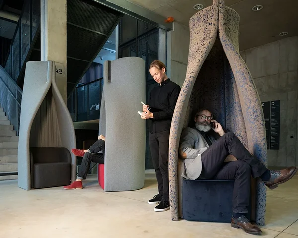 At the Tallinn Design Festival's mini fair, Kard and Loreida will share a stage to showcase interior elements united by common themes: softening acoustics, creating private personal space, and — perhaps unexpectedly —umbrella stands. These two interior architects have a long history of collaboration: beyond co-hosting an interior design TV show, they have designed oƯices, learning environments, trade fair stands, as well as art projects, competitions, and furniture development.